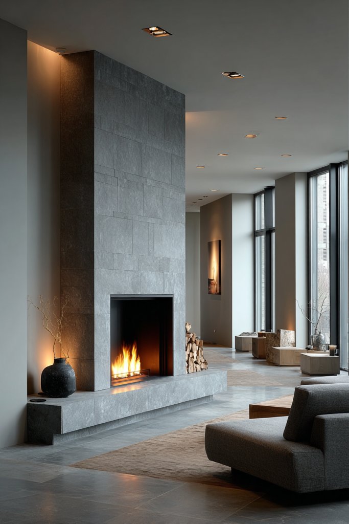 Personalize with subtle touches like a single sculptural object or a sleek fire glass bed. Incorporate textured textiles like a soft wool throw or a velvet cushion nearby to soften the starkness. You could also add a minimalist black mantel for display or a row of geometric candles for special occasions. The key is restraint—less is more.