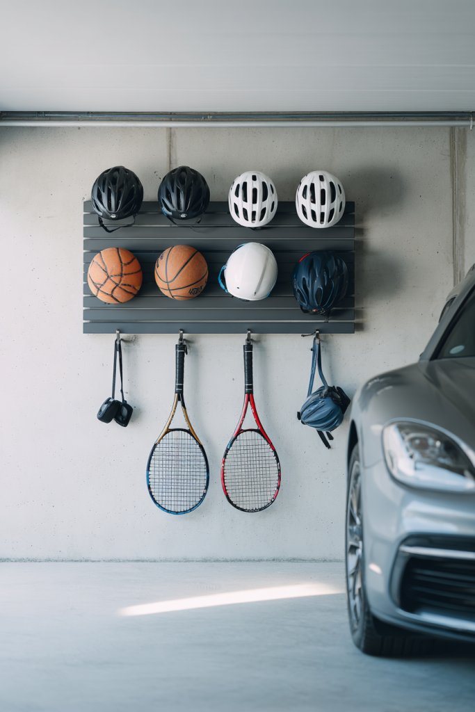 16. Sleek Wall-Mounted Racking for Sports Equipment