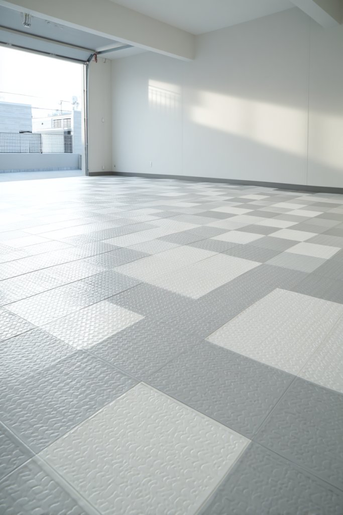Select from various patterns—hexagons, chevrons, or abstract shapes—to suit your style. Mix and match colors for a custom, energetic look or stick to a single shade for a streamlined appearance. For high-traffic areas, choose thicker, more durable rubber; for decorative zones, opt for thinner, patterned tiles. This flooring is versatile enough to fit any size or shape of garage.