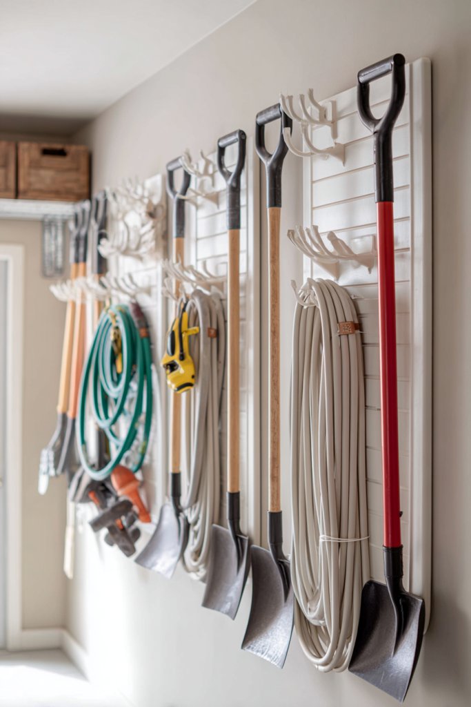 Opt for heavy-duty metal hooks or coated plastic for rust resistance. Use adjustable racks to accommodate different tool sizes. Incorporate labeled bins or hooks for small items like spray bottles or gardening gloves. For a rustic look, choose wooden slat systems with hooks or pegs, blending functionality with style. The system can be scaled up or down depending on your yard size and tool collection.