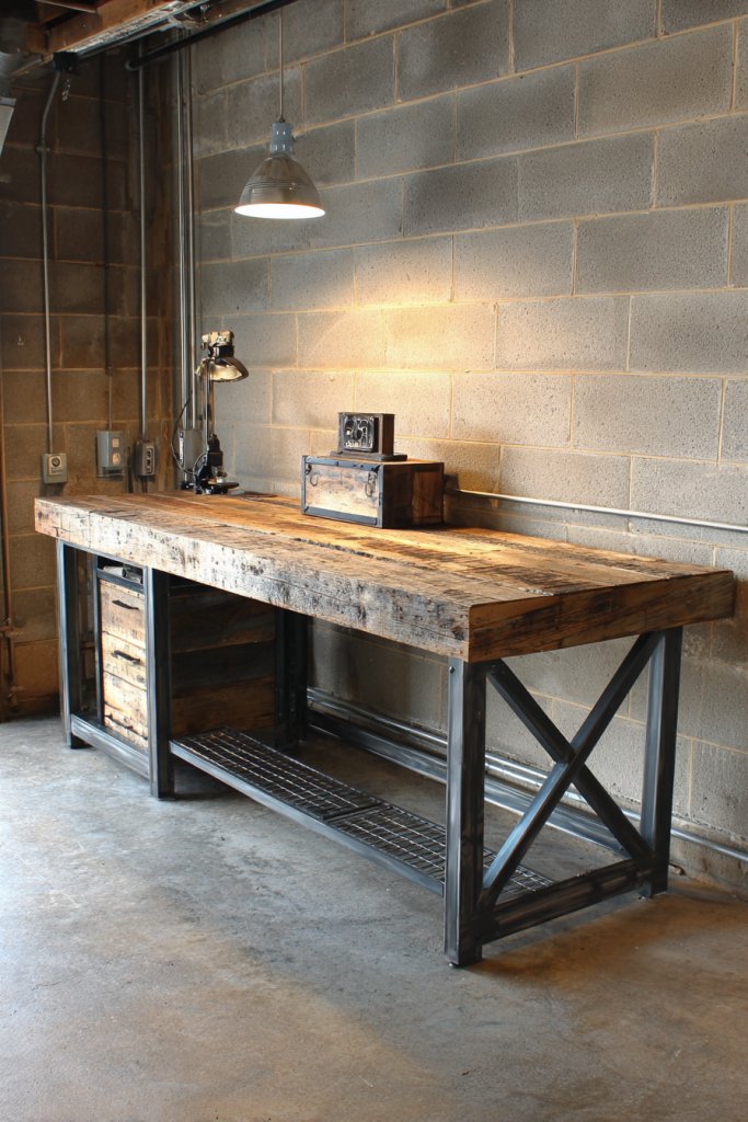 2. Industrial-Style Workstation with Metal and Wood Elements