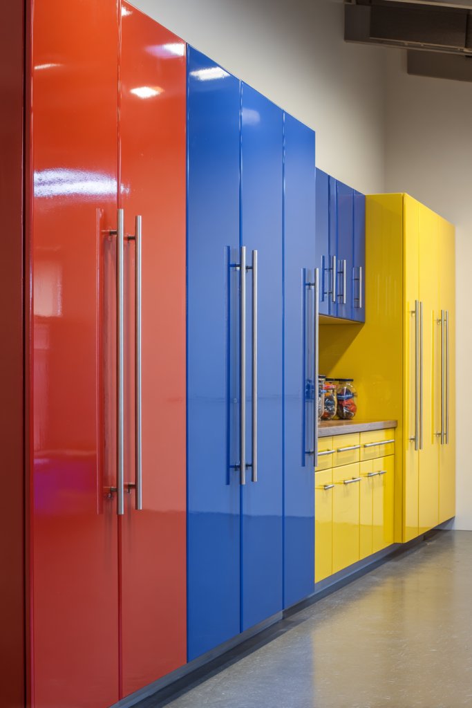 23. Bright, Colorful Wall-Mounted Cabinets for Extra Storage