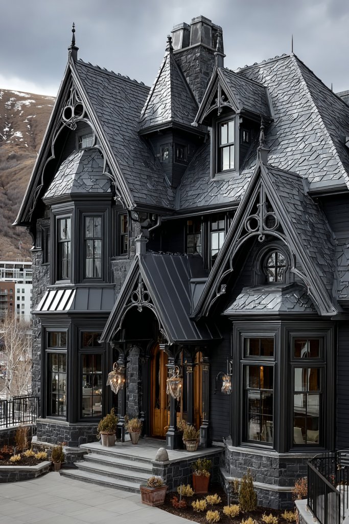 Picture a modern black metal awning over the front door, or rustic iron brackets supporting a porch roof. Metal railings with clean lines or wrought iron decorative elements add texture and shine. The reflective quality of metal enhances architectural features, giving depth and dimension to your exterior.