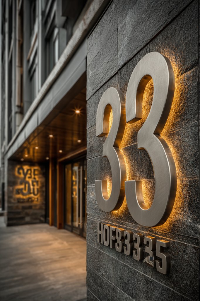 Choose materials like brushed stainless steel, bronze, or frosted acrylic to match your home’s architecture. For rustic homes, distressed metal or wood-backed numbers add charm. For ultra-modern homes, go with backlit LED options that make numbers pop at night. Placement can be vertical, horizontal, or staggered for a custom feel.