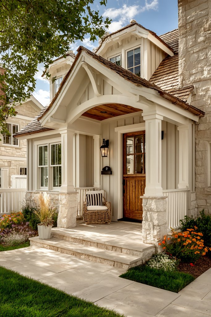 Feeling like your entry lacks warmth and shelter? A covered porch or portico creates a welcoming transition from street to home. It also offers a practical space to relax or greet guests without exposing them to the elements.