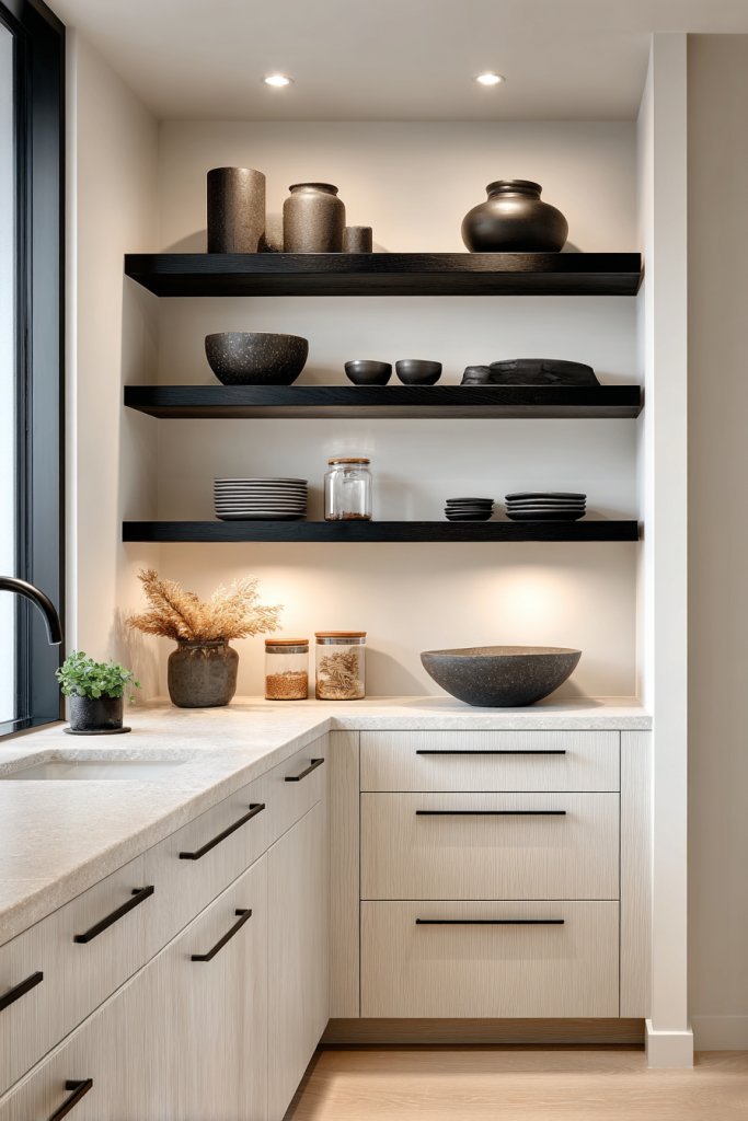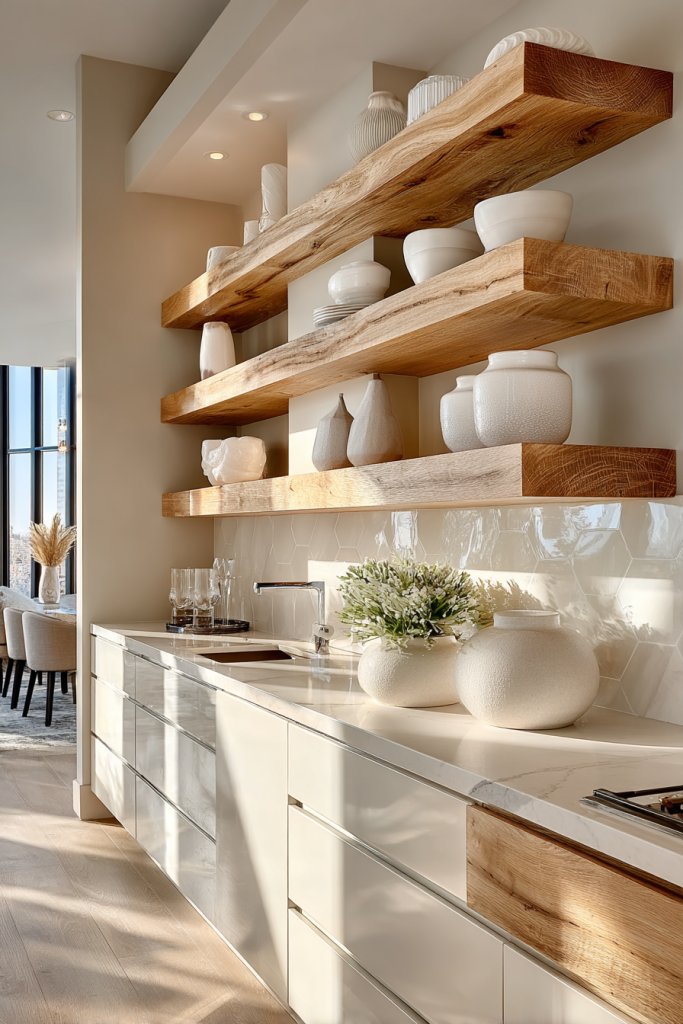 Minimalist open storage elevates your kitchen’s style while improving organization. It’s a practical solution that encourages daily tidiness and showcases your personal taste. Once you see how much easier it is to keep everything in order, you’ll wonder why you waited. Clean, accessible, and stylish—what’s not to love?