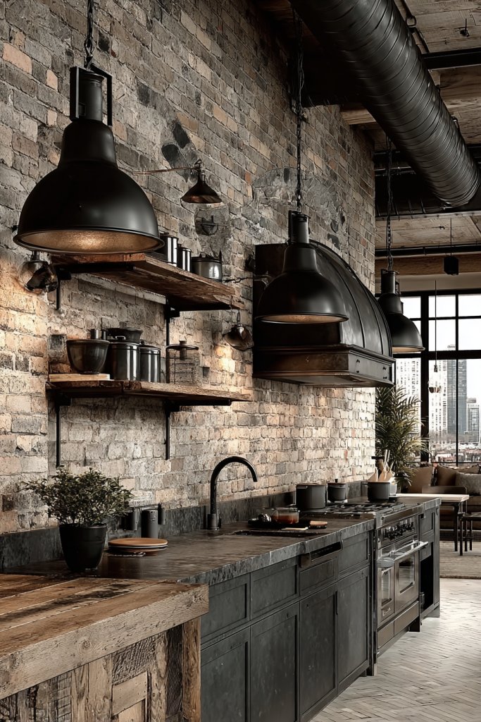 Mix metal finishes—brushed, matte, or shiny—for depth and interest. Incorporate industrial-style lighting, like cage pendants or exposed bulbs, for illumination. Use metal accents on cabinet handles, drawer pulls, or appliance trims. Balance the raw materials with soft textiles or warm lighting for a cozy touch. It suits both small city apartments and loft conversions.
