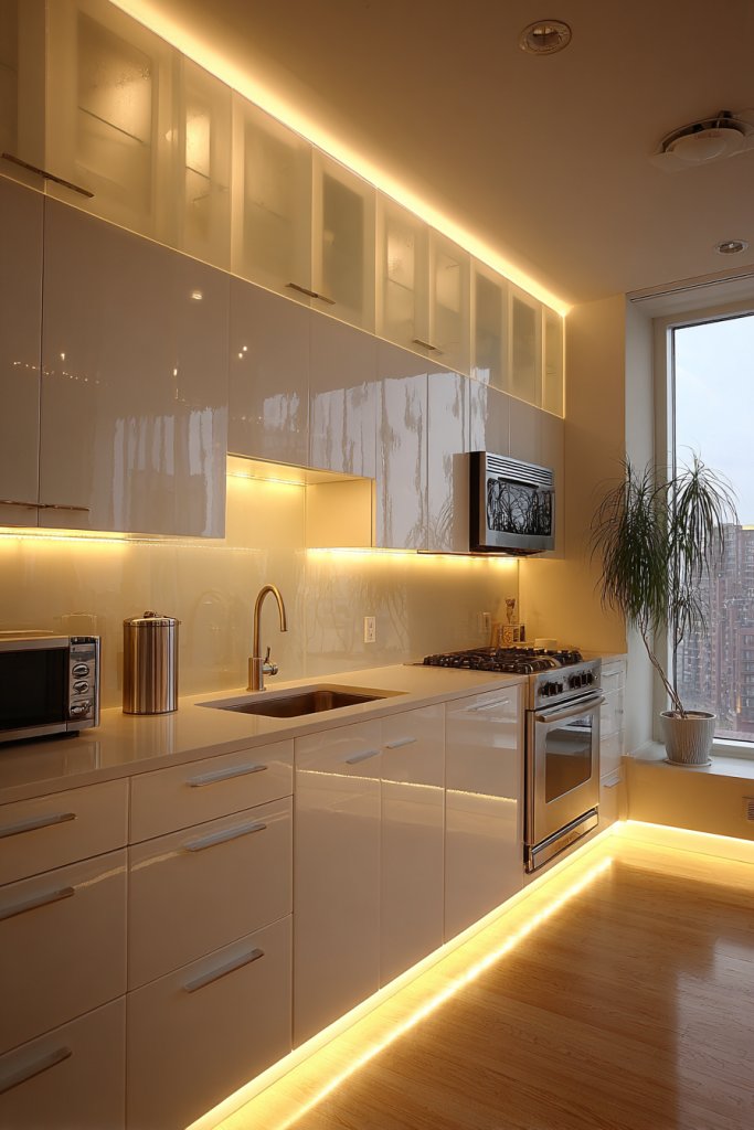 Imagine warm, glowing strips running beneath your cabinets, casting gentle pools of light on your countertops. The light accentuates textures like marble, wood, or laminate, making every surface look more appealing. Shadows soften, and the overall ambiance shifts from clinical to cozy—ideal for relaxing evenings or intimate dinners. It’s like turning your kitchen into a welcoming retreat.