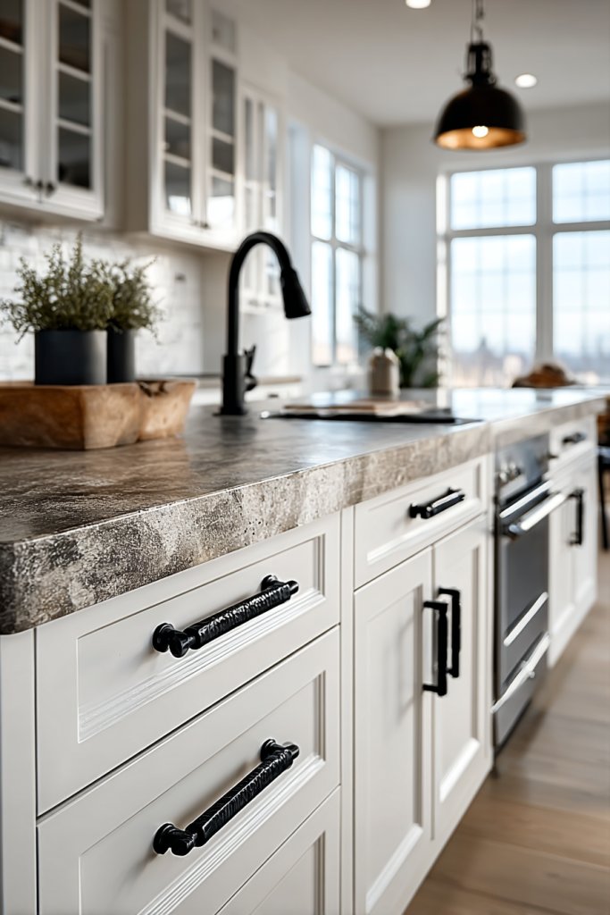 Visualize matte black handles on white cabinets, paired with black fixtures around the sink and stove. The dark accents add depth and contrast, giving your kitchen a bold, modern vibe. The matte finish absorbs light, reducing glare and adding a subtle, refined texture. It’s a look that’s understated yet impactful.
