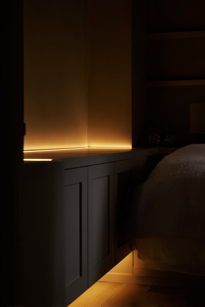 Imagine a bedroom softly illuminated by warm LED strip lights tucked behind crown molding or under floating shelves. A small bedside sconce with a fabric shade adds gentle pools of light, perfect for reading or relaxing. The light’s warmth highlights textures and colors, making the room feel layered and comfortable. Dimming capabilities allow you to adjust the mood instantly—from bright for tasks to dim for unwinding—without cluttering your space with multiple lamps. The effect is a subtle, sophisticated glow that transforms the entire room.
