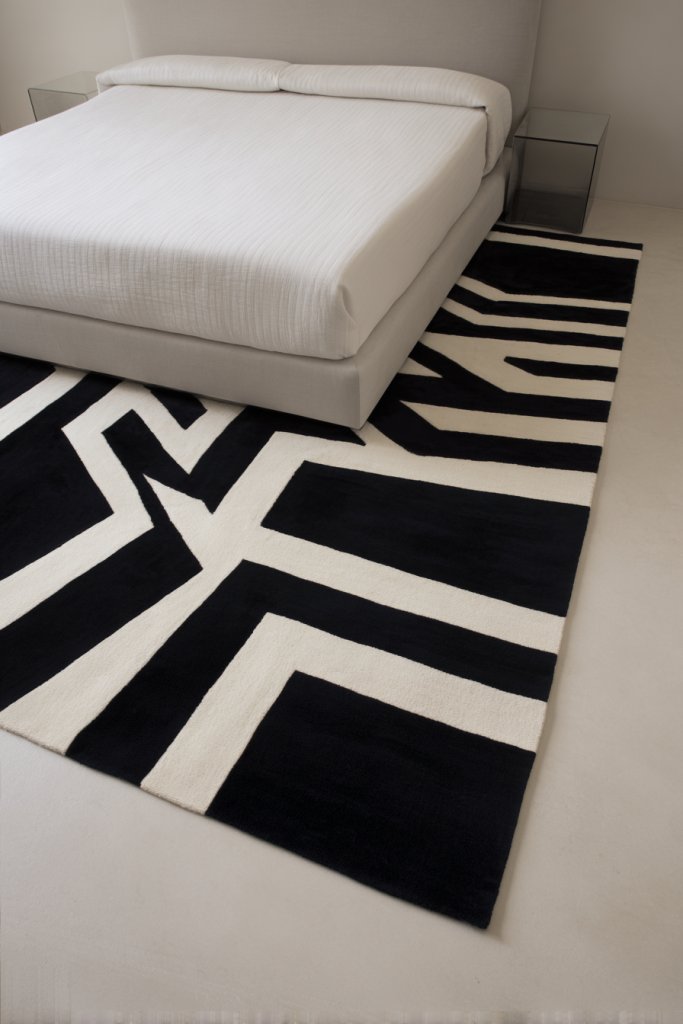 Imagine a rug with bold black-and-white geometric shapes or swirling abstract patterns in vibrant hues. It sits under your bed, defining the space and adding a layer of visual complexity. The textures are plush underfoot, inviting you to step onto the pattern. The rug’s modern design contrasts beautifully with minimalist furniture or complements eclectic decor, creating a focal point that’s both artistic and functional.