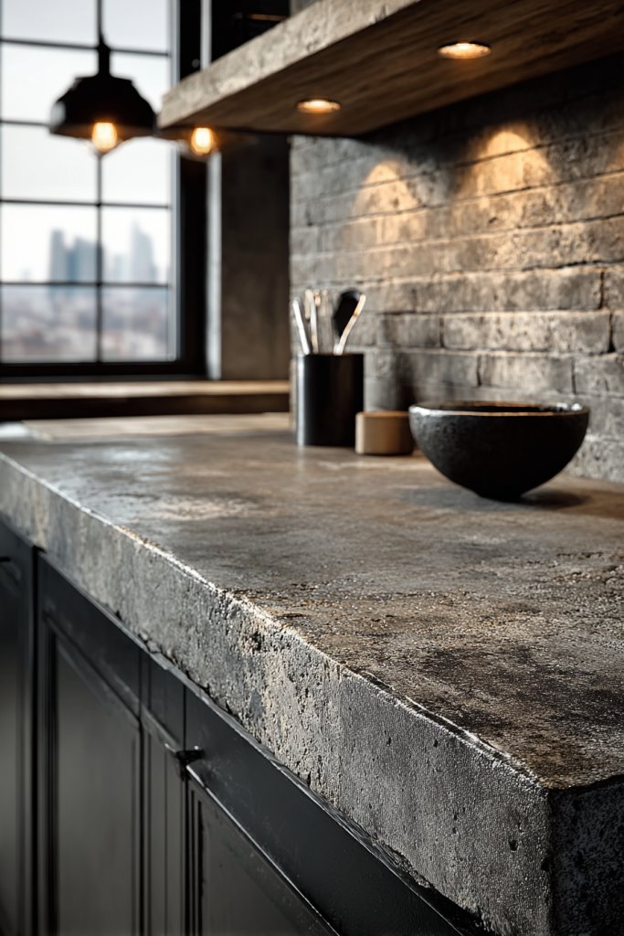 10. Concrete or quartz countertops combining durability with industrial-chic style