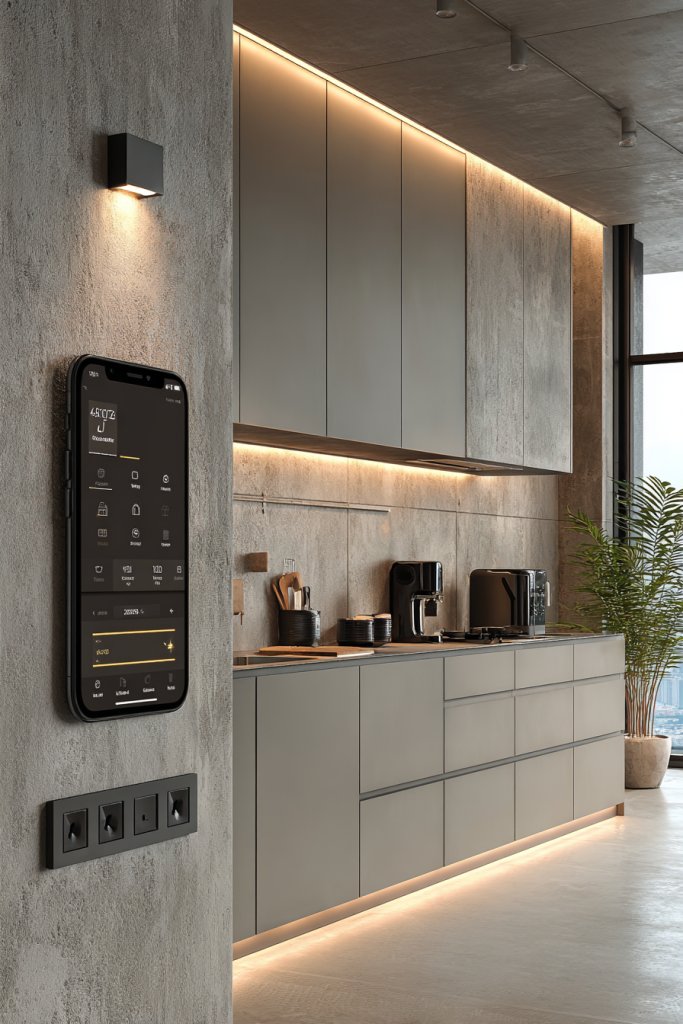 Picture sleek countertops with touchscreens and voice-activated controls integrated seamlessly into the cabinetry. Smart appliances like ovens and refrigerators connect via Wi-Fi, allowing remote monitoring or operation. App notifications alert you when your food is ready or if maintenance is needed. The space feels high-tech yet approachable.