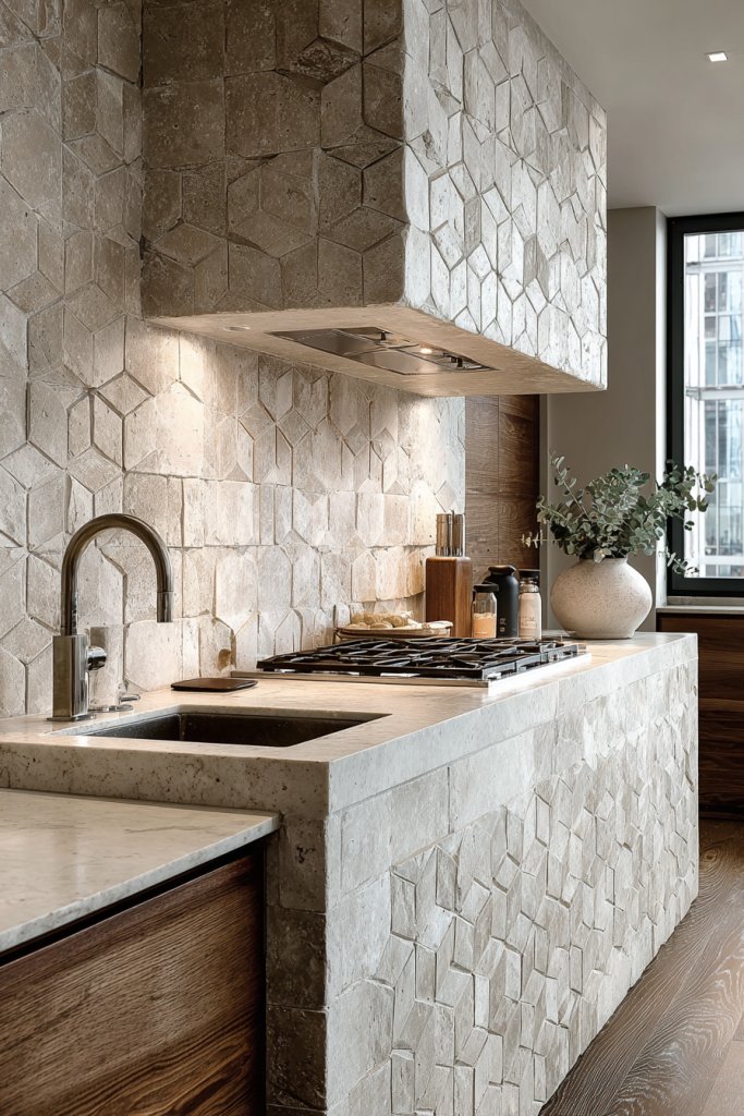 Textured geometric backsplash tiles bring a modern, artistic flair to your kitchen. They’re a subtle yet impactful way to make your space stand out. With thoughtful choices, your backsplash becomes a conversation piece and a reflection of your style.