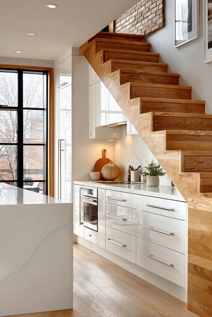 Cluttered countertops and overflowing cabinets make your kitchen feel cramped? Hidden storage compartments cleverly tucked beneath staircases or within kitchen islands free up space and maintain a sleek look. They hide away rarely used items or seasonal gear, keeping your surfaces tidy and your design seamless.