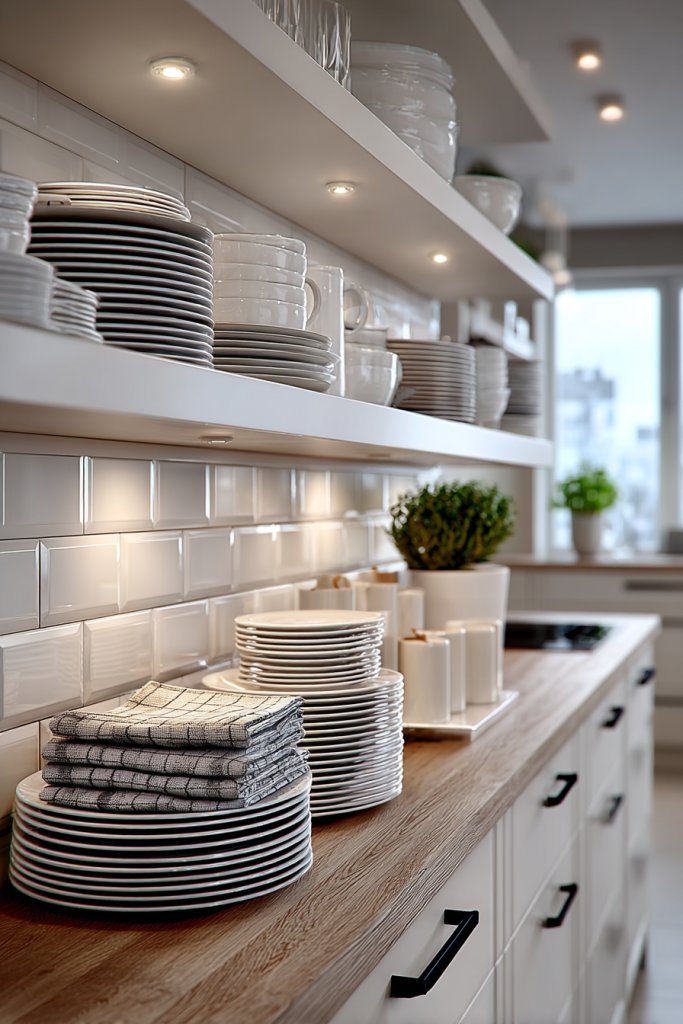 A well-styled open shelf elevates your entire kitchen aesthetic. It demonstrates intentional design and organization, making your space more enjoyable. With a little effort, you turn everyday dishware into a visual asset that reflects your personality.