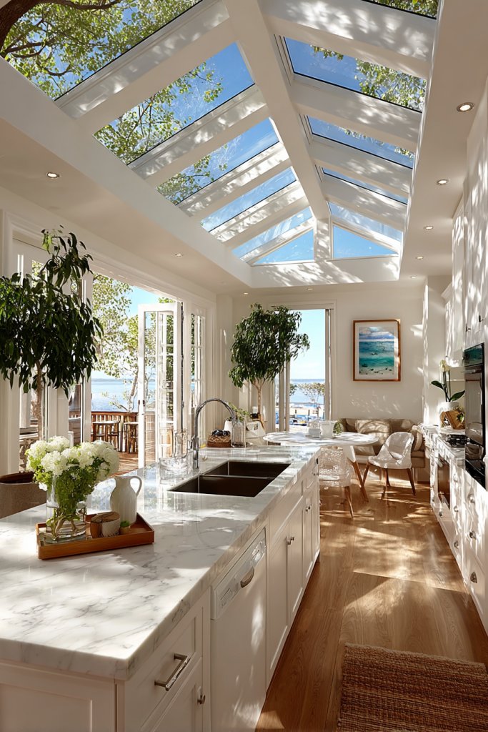 23. Incorporating natural light with large windows and skylights to brighten the space