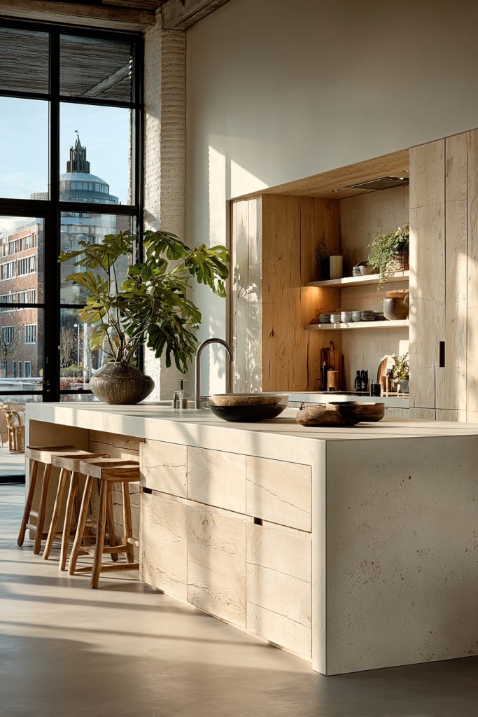 Choose concrete for a raw, industrial look, or opt for engineered quartz with a variety of colors and patterns. Both materials work well with minimalist, farmhouse, or modern styles. Pair with stainless steel appliances, open shelving, or warm wood accents for a balanced aesthetic. Consider adding integrated sinks or backsplashes for a cohesive look.