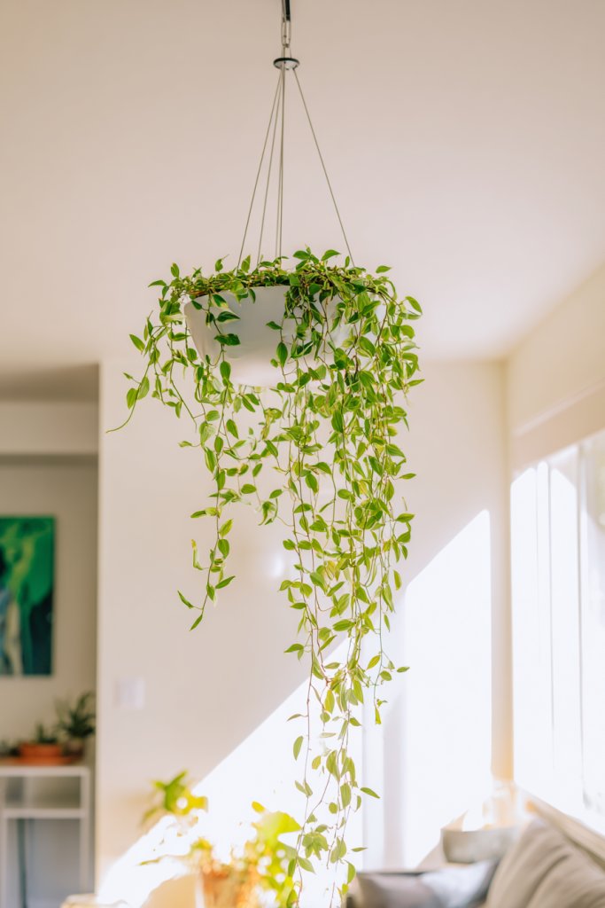Use different sizes and shapes of planters for visual interest. Combine trailing plants with upright varieties for layered effects. Opt for decorative containers made of ceramics, woven baskets, or metal to match your decor style. You can also incorporate lighting elements, like fairy lights, to highlight the greenery at night.