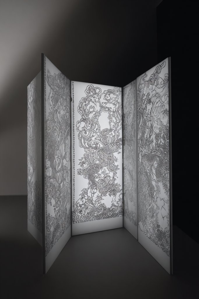 8. Folding Screen Dividers with Artistic Patterns for Visual Interest