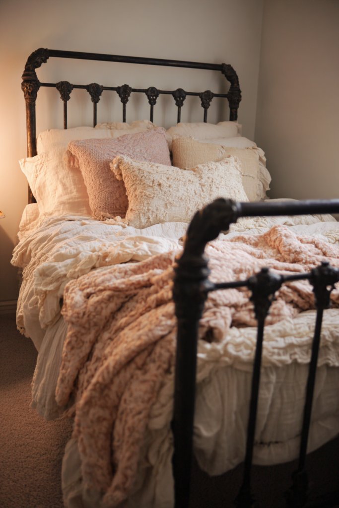 3. Vintage-Inspired Metal Bed Frame with Cozy Linens