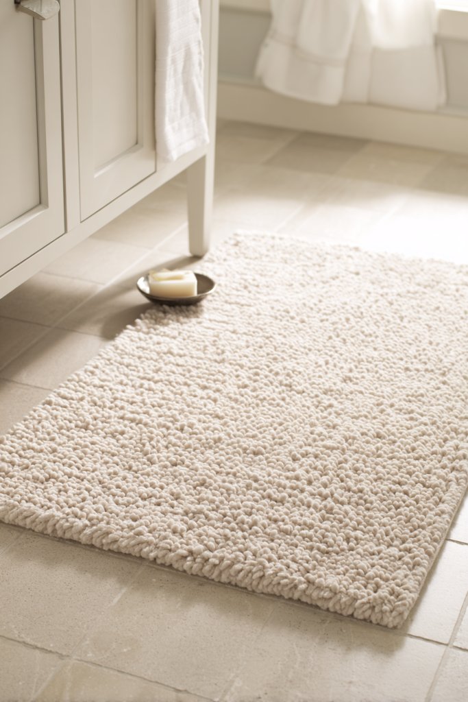 Choose from various textures—looped, cut pile, or woven—based on your style. Opt for neutral tones like beige, grey, or taupe for a sophisticated look, or add a pop of color for vibrancy. Use layered mats or small rugs to define different zones, like the vanity or shower area. Select water-resistant, easy-care materials for longevity.