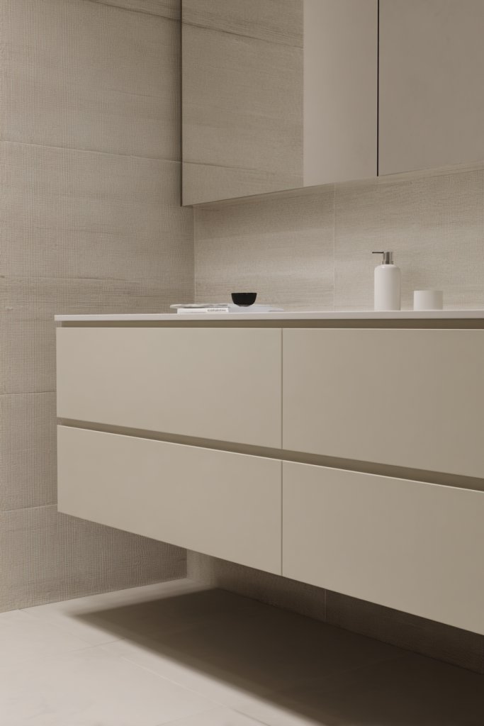 Bright, busy bathrooms can feel chaotic and uninviting. A soft, neutral palette with matte finishes creates a calming, sophisticated environment. It’s a timeless choice for those who want serenity and understated elegance.