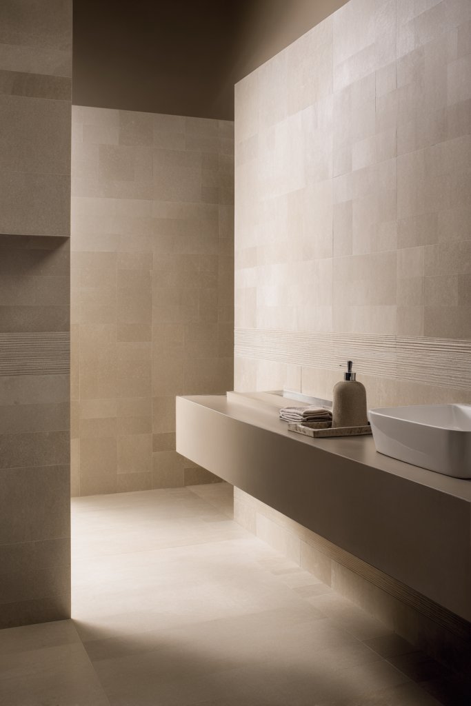Add a border of contrasting tiles or a decorative mosaic at specific heights for a personalized touch. Incorporate subtle underlit LED strips along the top or bottom edges to highlight the texture and create a warm glow. Pair with sleek fixtures and minimal accessories to keep the focus on the stone’s natural beauty. Think about integrating textured bath mats or towels in complementary colors.