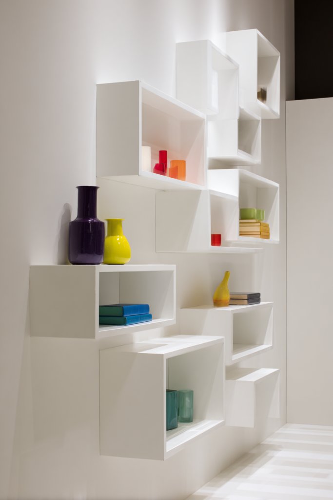 10. Layered Wall-Mounted Shelves with Colorful Decor