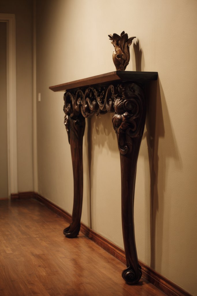 Is your hallway functional but lacking a wow factor? A simple console table can be transformed into a statement piece with artistic detailing. It combines practicality with personality, making your space memorable.