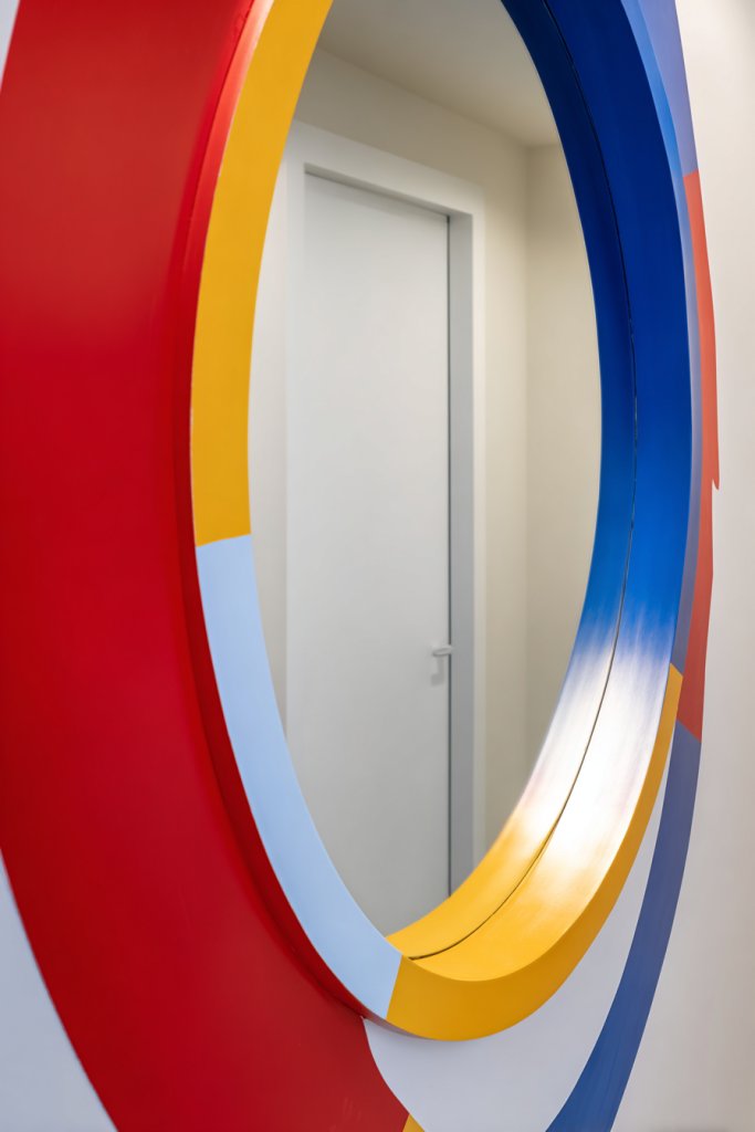 Imagine a collection of small round mirrors with frames painted in bright, contrasting colors like coral, teal, and gold. The frames catch the eye and reflect light, making the space feel larger and more vibrant. The mix of shapes and colors creates a playful, eclectic gallery wall. When sunlight hits, it bounces around, adding a lively shimmer that enlivens your hallway.