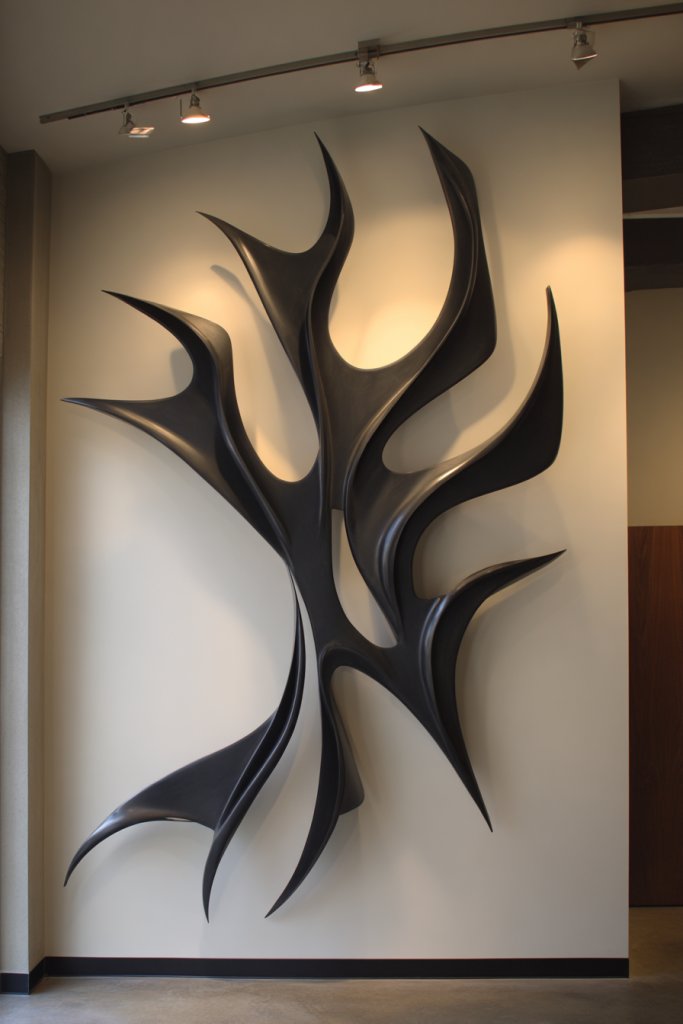 Envision a large, abstract sculpture with flowing, interconnected shapes finished in matte black or brushed gold. The metal’s texture catches light, creating shadows that shift as you move through the space. These sculptures add a three-dimensional element that transforms the wall into a dynamic canvas. It’s like having a piece of modern art alive in your hallway.