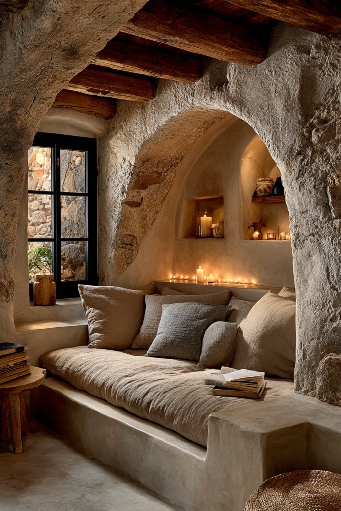Customize the hues based on the season—warm creams and browns for fall, cooler neutrals for summer. You can also swap out cushions and textiles to match your mood or decor style, from modern minimal to rustic charm. For smaller rooms, choose compact nooks or alcoves, while larger spaces can accommodate more elaborate setups with built-in benches. Adding a mirror nearby can enhance the cozy effect and reflect more light.