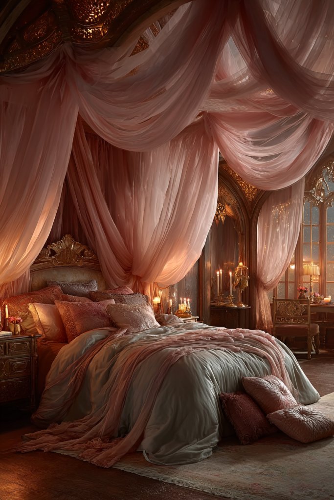 A canopy transforms your bed into a romantic sanctuary, elevating your entire bedroom aesthetic. It’s a project that’s easy to customize and adapt over time. Once you see how much softer and more enchanting your space becomes, you’ll be motivated to explore other romantic decor ideas. It’s a charming, effortless way to add elegance to your retreat.