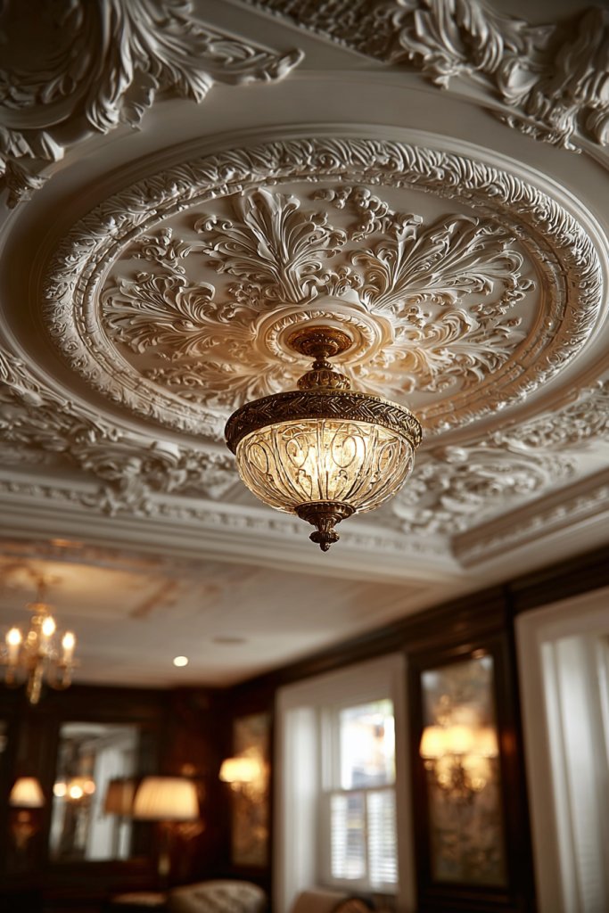 18. Decorative Ceiling Medallions and Soft Lighting Fixtures