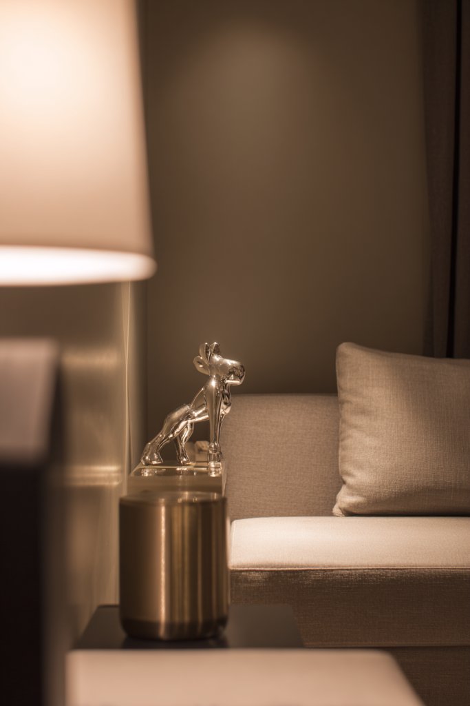 Imagine a set of brass candle holders on a minimalist side table or a brushed gold picture frame on a neutral wall. Small metallic details catch the light, creating a warm glow that enhances the room’s ambiance. Incorporate metallic accessories in textures—such as matte, brushed, or polished—to add depth. The contrast of shiny metal against soft textiles or matte surfaces creates a layered, upscale aesthetic.