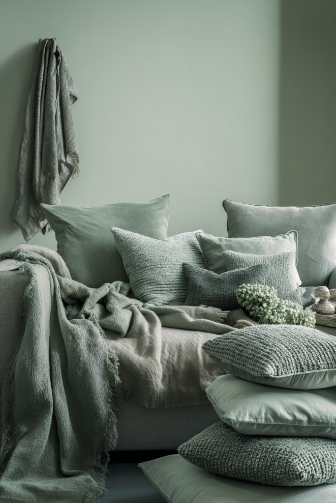 Imagine walls painted in a soft sage, complemented by cushions, throws, and curtains in slightly different shades of green. Use furniture with subtle variations—like a darker green armchair or a lighter rug—to add depth. Accents in muted metallics or natural textures keep the look layered but cohesive. This palette creates a tranquil, sophisticated room that’s pleasing to the eye and easy to style.