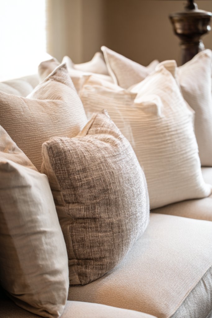 16. Incorporating Textured Throw Pillows in Complementary Neutrals