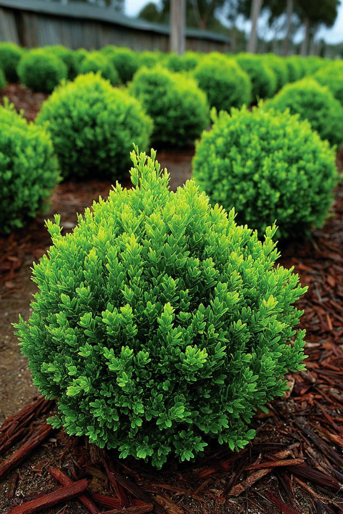 Add decorative stones or mulch in contrasting colors around the shrubs. Incorporate small garden statues or textured planters nearby to enhance visual interest. Seasonal ornaments or fairy lights can add charm during holidays. These shrubs become a reliable, evergreen foundation for your entire landscape.