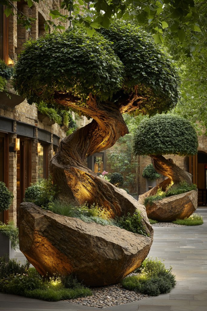 Twisted trunks and topiary sculptures add a sophisticated, artistic vibe to your garden. They showcase your creativity and dedication, inspiring you to experiment more. With patience and care, you turn ordinary plants into captivating art, making your landscape uniquely yours. Why not create your own living sculpture?