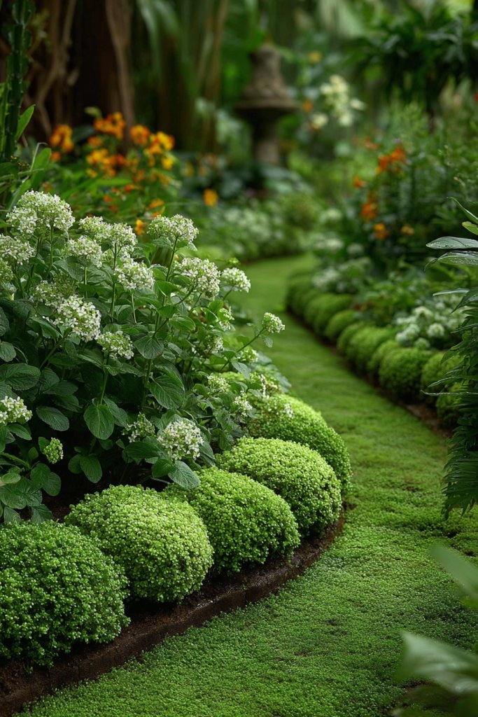 Select ground covers suited to your climate—such as creeping thyme, sedum, or moss. Plant densely to create a thick, carpet-like border that requires minimal trimming. Combine different textures and colors for visual interest. Keep the edges tidy with natural or decorative edging materials, or let them blend seamlessly.