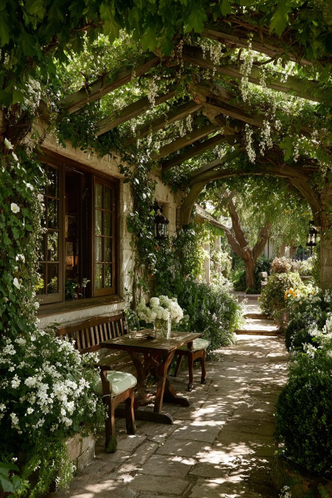 5. Pergolas with Climbing Vines for Shade and Privacy