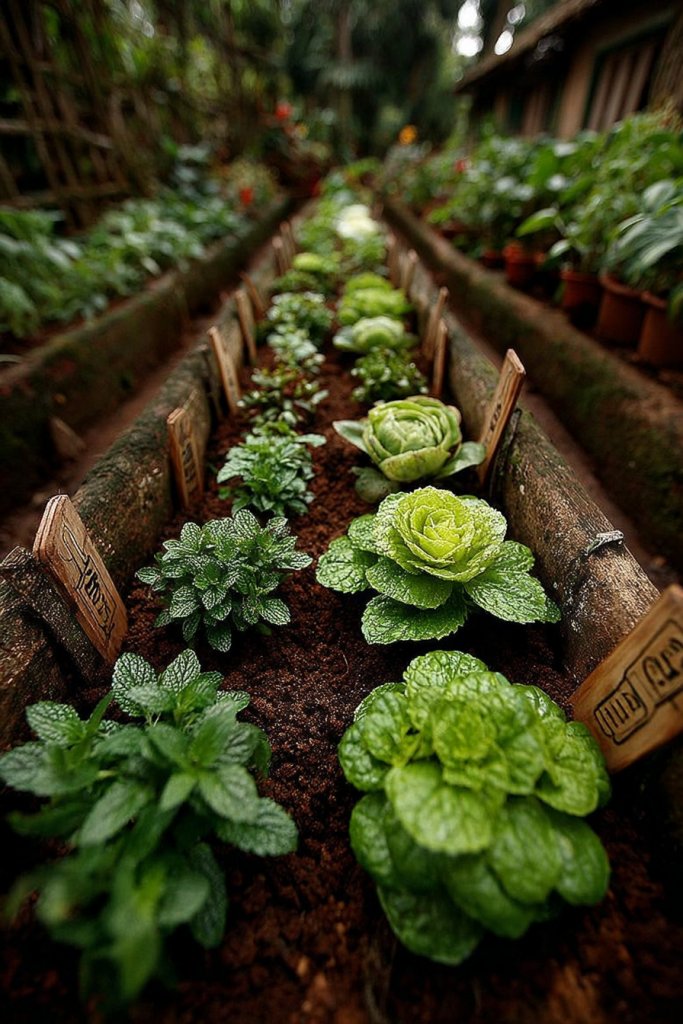 Visualize a compact row of raised beds or tiered containers filled with fragrant basil, mint, cherry tomatoes, and peppers. The lush greenery and vibrant colors make your backyard look like a mini farm. The scent of herbs wafts through the air, and ripe vegetables are within easy reach. It’s a practical, eye-catching display of productivity.