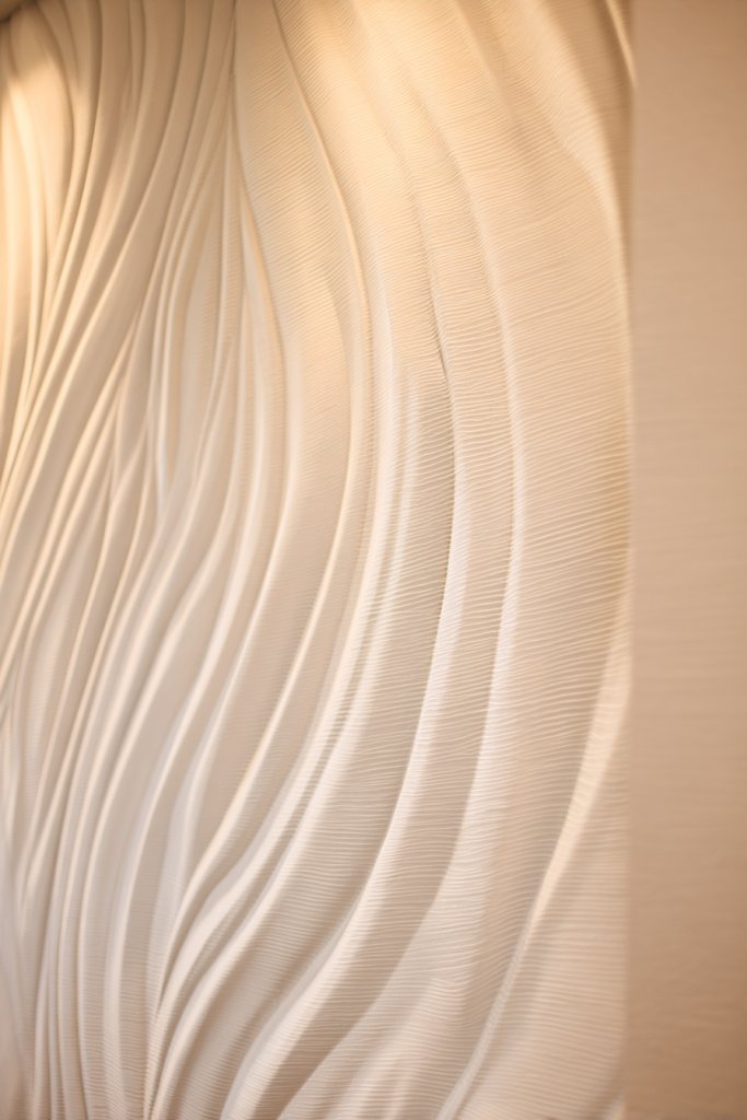 Imagine soft, flowing lines that ripple across your walls, catching light at different angles. The textured surface mimics the look of fabric or silk, adding a tactile dimension. The gentle undulations bring a sense of calm and elegance, perfect for bedrooms or formal living areas.