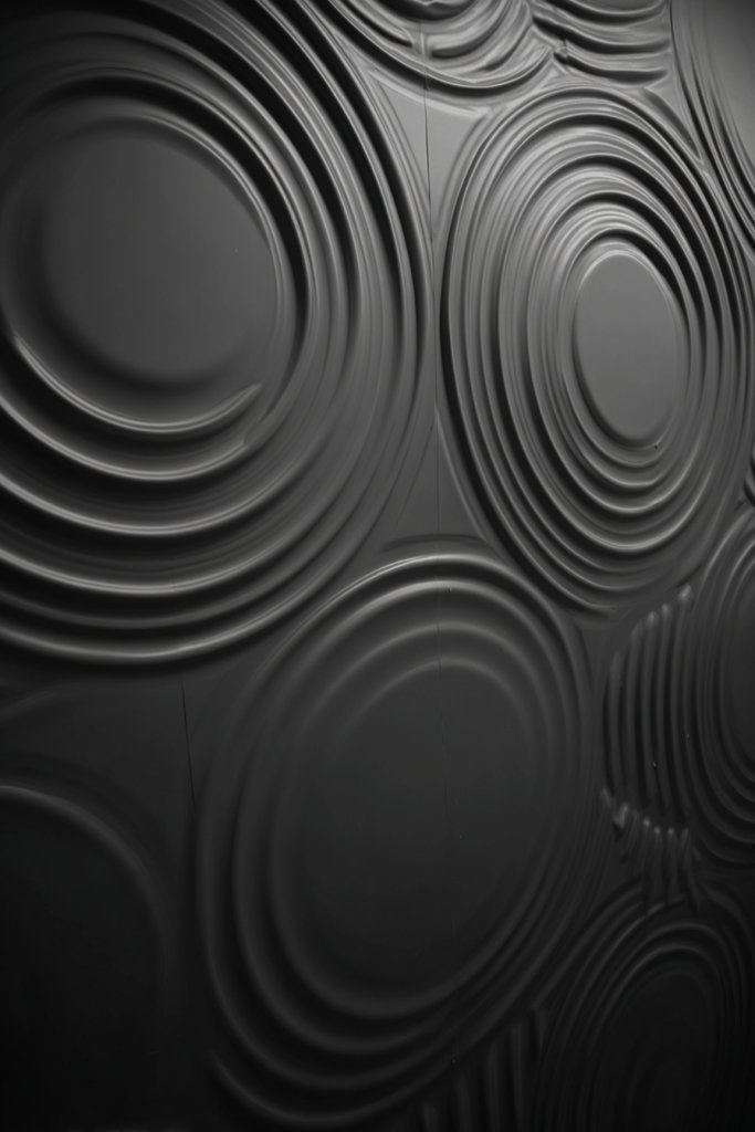 Imagine large, bold circles radiating outward, with the center slightly elevated. The textured surface creates shadows and highlights, emphasizing the pattern’s movement. This design draws the eye and creates a sense of rhythm and harmony within the space.