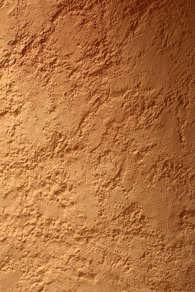 Picture walls with a rough, uneven surface that resembles traditional stucco or plaster coatings. The textured finish captures natural light and shadows, creating a warm, inviting glow. The irregular surface feels organic, like a handcrafted masterpiece that adds depth.