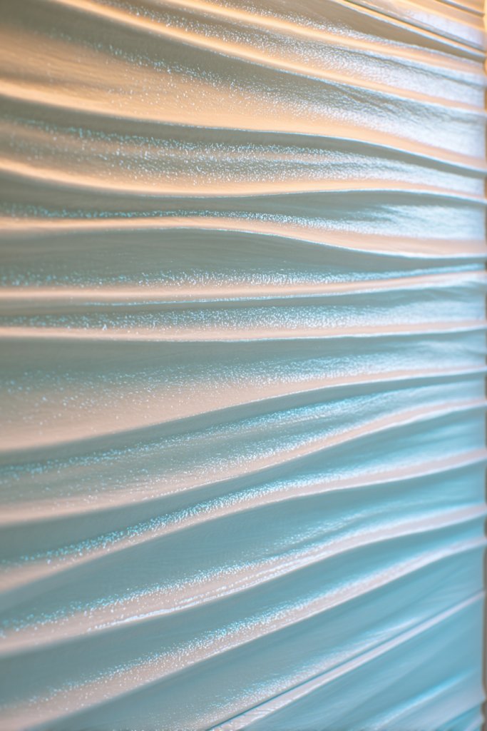 Imagine soft, undulating lines running horizontally across the wall, catching light at different angles. The textured surface mimics the gentle waves of water, creating a soothing visual rhythm. The effect adds depth and a sense of motion, making your walls feel alive.