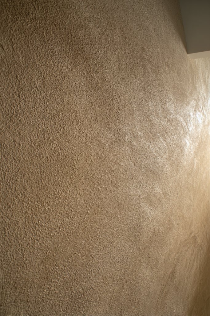 Imagine walls that have a soft, granular texture reminiscent of sandy beaches or desert landscapes. The finish catches the light with a subtle shimmer, adding depth and warmth. It invites you to reach out and run your fingers across the textured surface, creating a sensory experience.