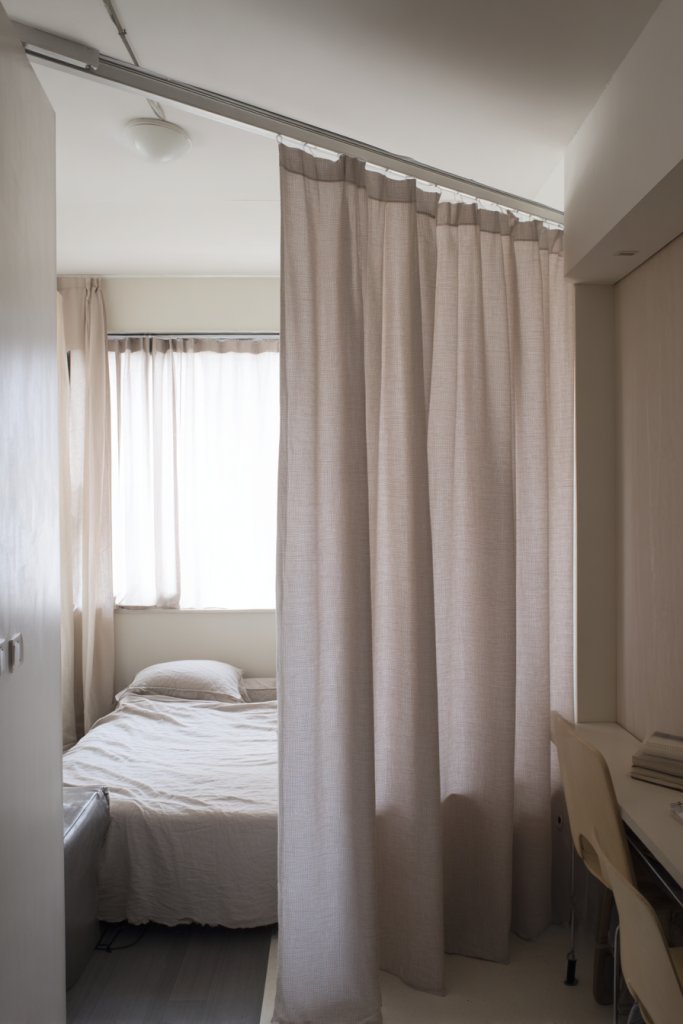 Picture a flowing curtain in a soft fabric, hung from a ceiling track that sections off your bed from a work nook or closet. When drawn, it creates a cozy, private area; when open, it reveals a spacious, open room. Choose colors and textures that complement your decor for a seamless look. This simple addition transforms your tiny room into a multi-functional space.