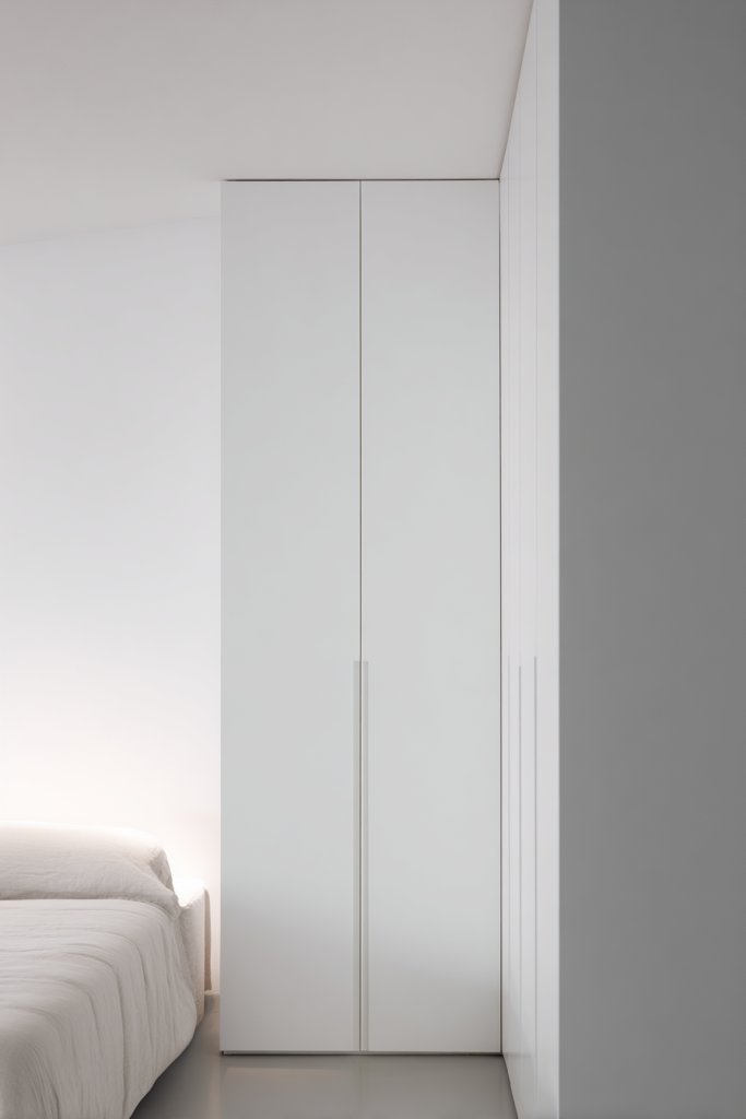 Imagine a narrow, tall wardrobe with a slim profile fitting snugly into a corner or beside your bed. It features hanging space, shelves, and possibly drawers—all designed to fit in tight spots. Its clean lines and verticality add height to the room, making it feel more spacious. The wardrobe’s reflective doors can also brighten the space.
